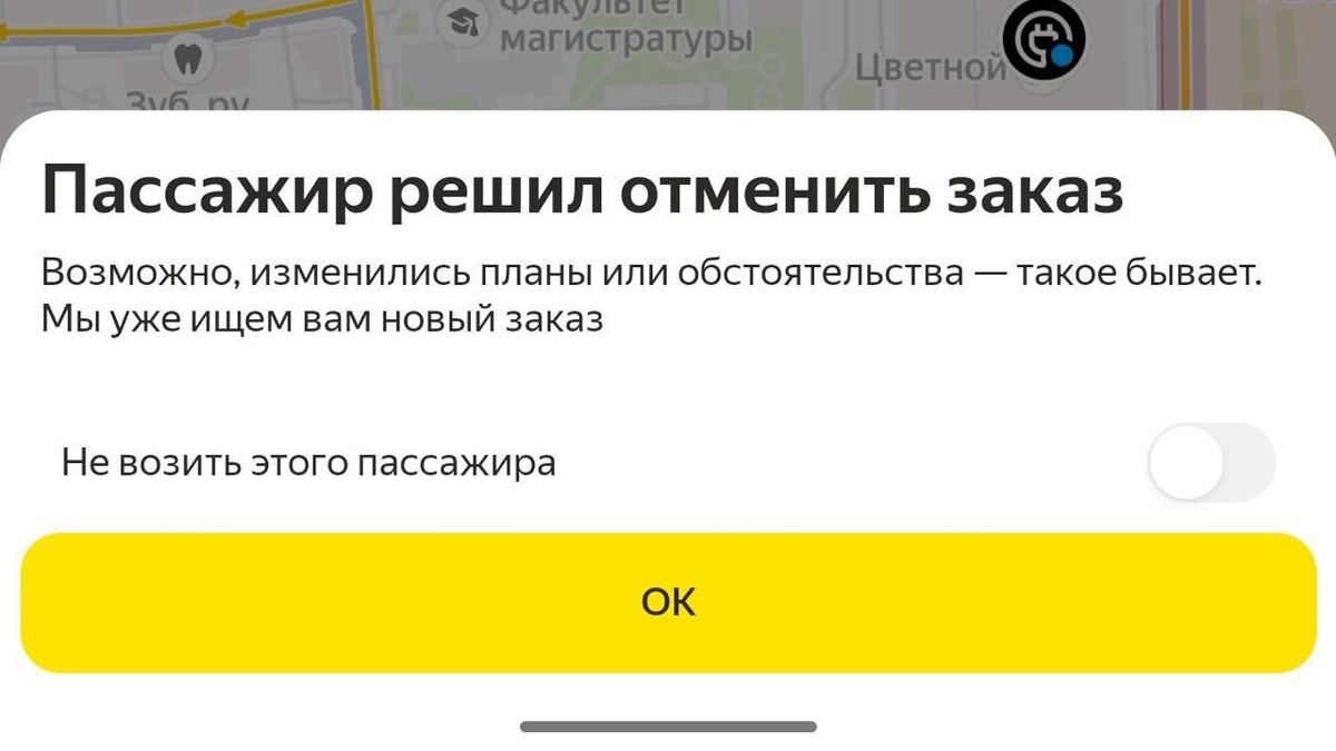 Свершилось: теперь водители могут отказываться от паксов. Правда только если они отменили заказ, когда вы уже вовсю ехали к нему.