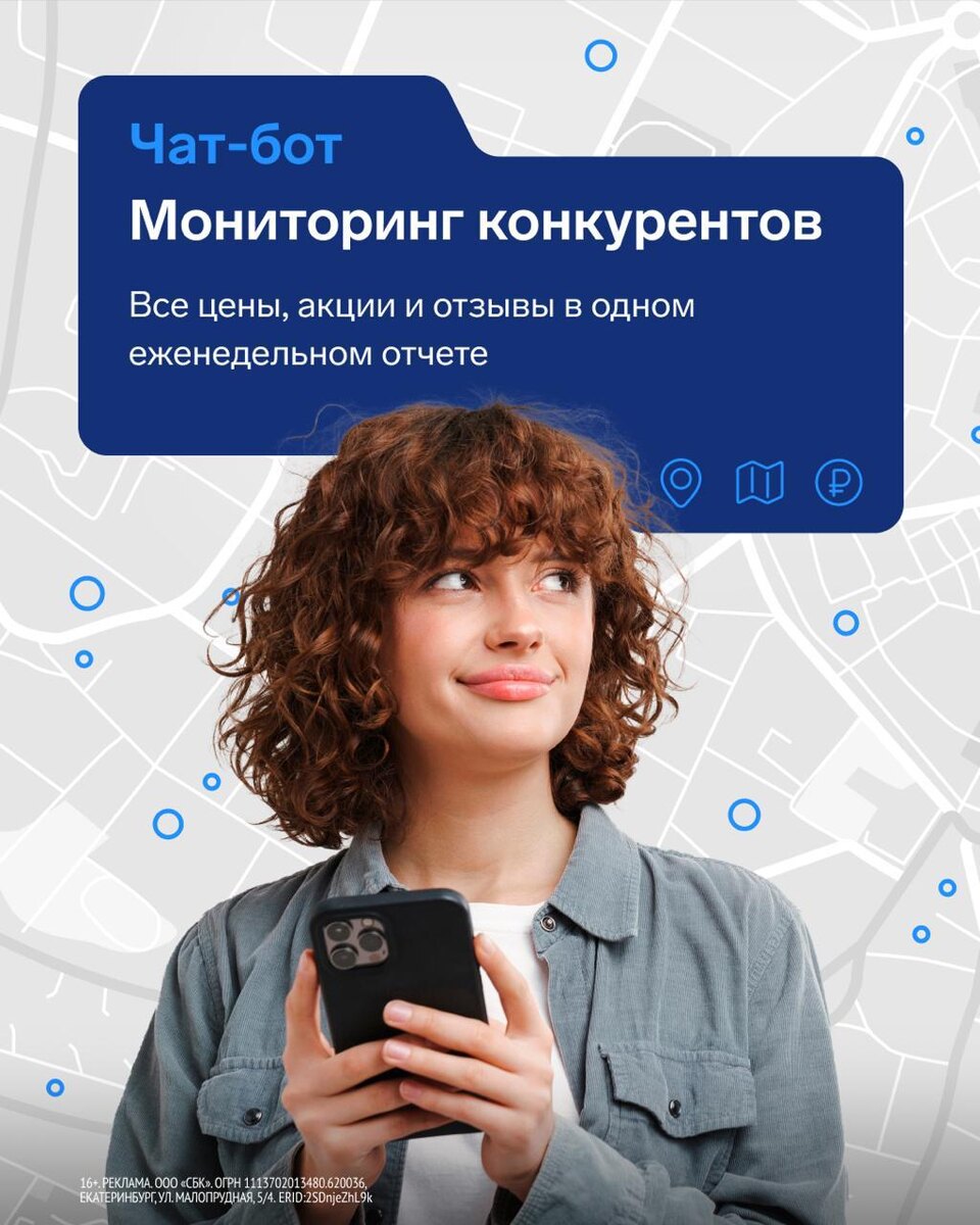 Следите за конкурентами, пока они не увели ваших клиентов Представьте: рядом открывается новый салон или кафе. Они снижают цены, запускают акции, собирают отзывы — и ваши клиенты уходят к ним. Узнавать об этом слишком поздно обидно, особенно когда всё можно было предусмотреть. Телеграм-бот автоматически отслеживает ближайших конкурентов: цены, акции, отзывы и новые услуги. Все уведомления приходят прямо в мессенджер — без приложений и сложных настроек. Бот создан для владельцев и управляющих локального бизнеса, а также маркетологов. Что вы получаете: ✔️ Уведомления в привычном формате Телеграма ✔️ Экономию времени и денег на анализе конкурентов ✔️ Быстрые управленческие решения ✔️ Сохранение клиентов и точки роста бизнеса Бот не только собирает данные о конкурентах, но и формирует персональные рекомендации с помощью искусственного интеллекта. Вы сразу понимаете, какие шаги помогут удержать клиентов и усилить позиции. Закажите сравнительный анализ вашей компании и 5 ближайших конк