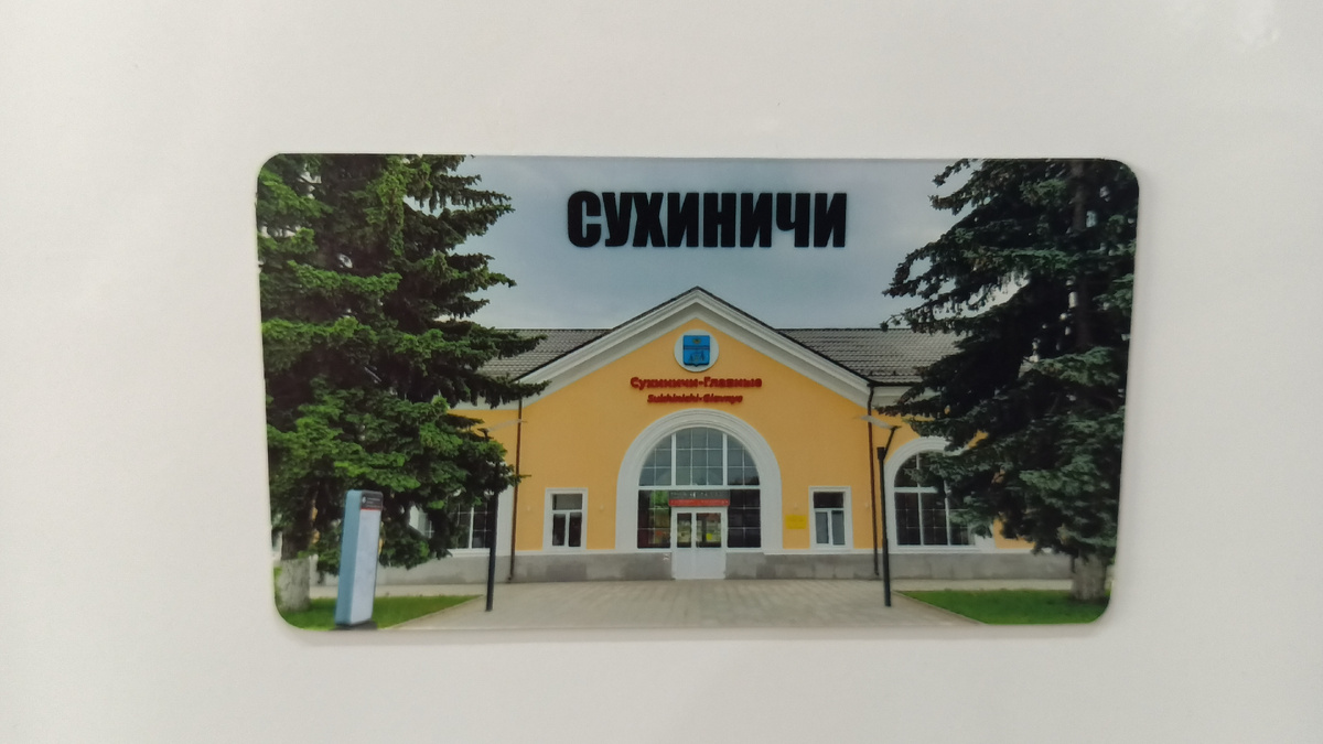 Расскажу очень кратко: во время наших поездок по стране мы два раза были в Сухиничах, но ни одного магнита этого населённого пункта ни на вокзале, ни в магазинах я не нашёл. Обычно, если я что-то не смог купить на месте, потом нахожу и заказываю по интернету. Так вот, облазив всю сеть, все авито и прочие площадки, выяснилось, что магнитов Сухиничи не существует в природе. Вообще. Никаких... И я подумал, коль уж два раза я там был и минимум ещё два раза буду, надо этот вопрос решить с обратной стороны. Если уж продавец газет на вокзале в Луге изготавливал магниты сам, то почему я не могу сделать то же самое? Я просто взял фотографию, сделанную в одну из поездок, пририсовал сверху название "СУХИНИЧИ", нашёл контору по изготовлению магнитов и заказал три штуки по 150 рублей каждый, которые и получил СДЭКом уже через два дня. Так что теперь я счастливый обладатель единственных в мире трёх экземпляров магнита с городом Сухиничи... За сим вечно ваш (с) Касым, 2025