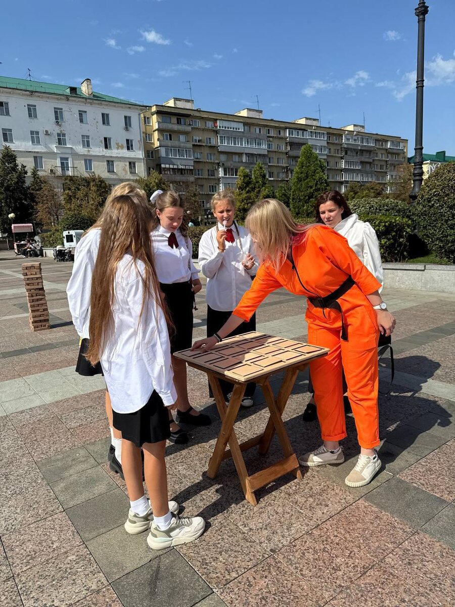 С полудня и до двух дня площадь бурлила энергией творчества и веселья. Учреждения культуры города подарили зрителям незабываемые выступления, а наш парк приготовил сюрприз для самых активных: гигантская Дженга звала проверить свою ловкость, мега-твистер завернул ноги и руки в узел, "Деревянная рыбалка" подарила азарт, а веревочный лабиринт испытал на прочность дружбу и смекалку! Любой желающий мог окунуться в атмосферу игр и развлечений.