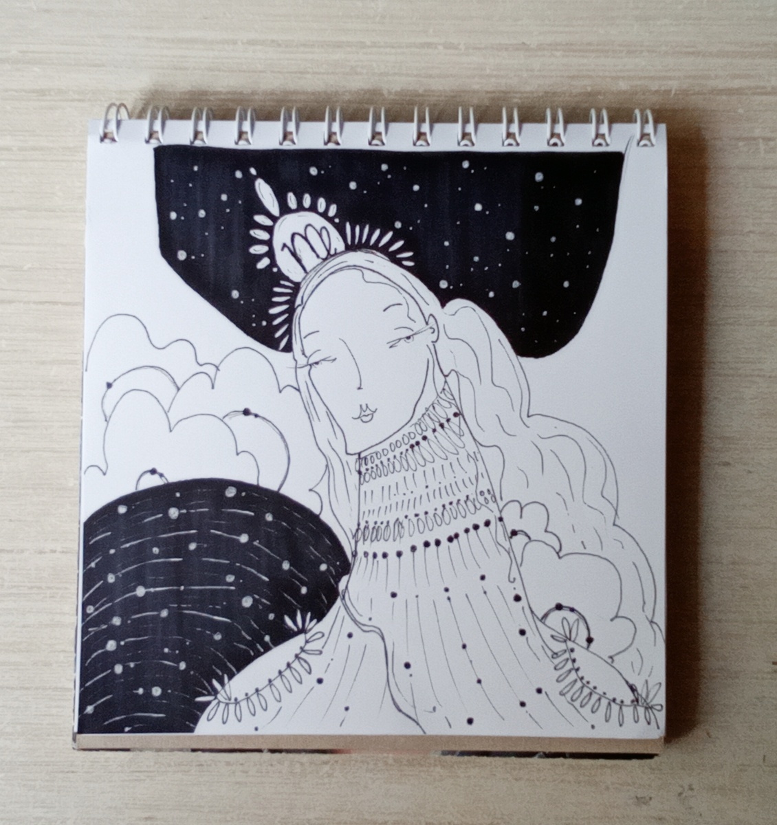 Всем чернично-космический привет! После недельного перерыва в рисовании Инктобера52 возвращаюсь к заданиям. И следующим в списке значится Virgo / Дева. Опять я решила рисовать портрет. Хотелось сделать милое лицо с мягкими чертами лица и длинными волосами. Для вдохновения перечитала основные символы знака. Сказано, что главный символ Девы - серп, срезающий сноп созревших колосьев. Но я обратила внимание на планету, управляющую знаком - Марс. Я поместила ее рядом с образом и украсила простенькой текстурой, чтобы обозначить планету. Стихия Земля в работе у меня олицетворена в виде цветов, растущих на этой планете. И, конечно же, присутствует космос. Сам по себе образ Девы не угадывается. Но благодаря короне со знаком уже можно смело сказать, что это именно она. Вот так получилось выполнить 35-ое задание годового челленджа Инктобер52. #Inktober #inktober52 #inktober52Virgo Спасибо за просмотр! Всем вдохновения!
