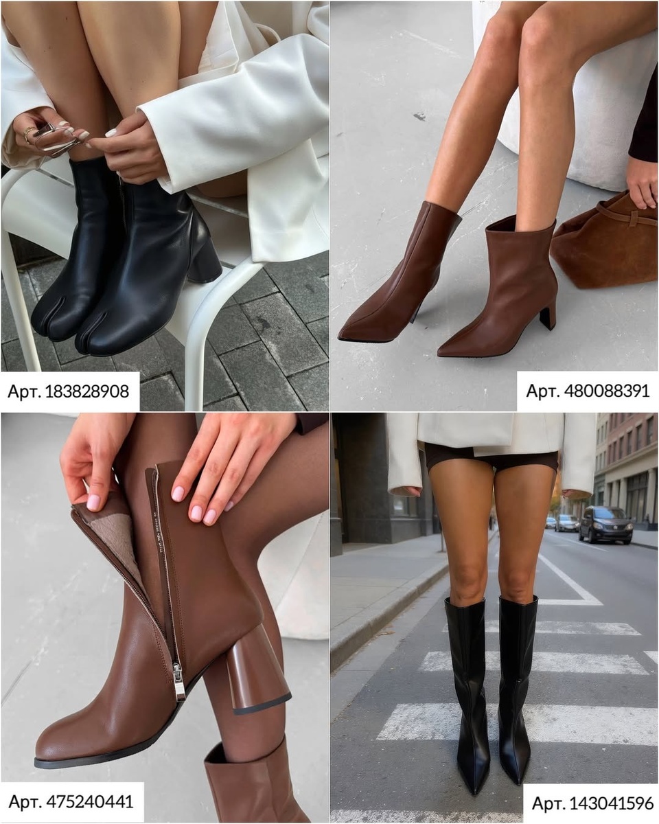 Осенняя обувь — это не только про тепло и комфорт. Это про силуэт, линию носка, высоту голенища и фактуру кожи, которые мгновенно собирают образ. Я разобрала для вас модели с фото строго по порядку артикулов и добавила советы стилиста: с чем носить, кому подходит колодка и как «подружить» пару с гардеробом.