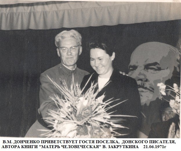 Поразительно, но помимо исполнения своих прямых обязанностей, Донченко, с весны и до поздней осени, успевала становиться в ряды нас, бюджетников, помогающих колхозам в прополке и сборе овощных культур, очистке початков кукурузы на сельскохозяйственных токах, субботниках по благоустройству поселка.