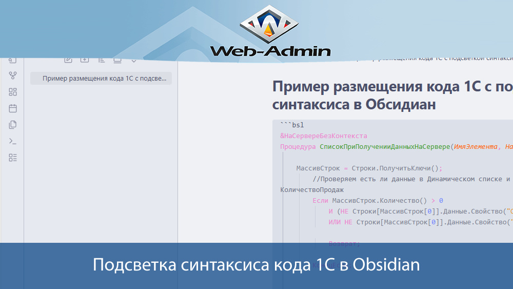 Решил, что мне просто необходимо вести разнообразные заметки в электронном виде, т.к. в бумажном виде — все заметки периодически теряются, а так же в них не очень удобно делать заметки, описывающие различные процедуры и функции в 1С. И главное для меня было — найти ту программу, где я могу вести заметки, вставляя в эти заметки код 1С и естественно нужно, что бы данный код подсвечивался. Да, сейчас я веду свою базу знаний здесь на сайте и на канале в Дзен, но есть такие «заметки», которые в общий доступ не выложишь, как минимум потому, что выкладывать нужно полностью рабочий код. Ну и естественно есть ещё проблема — весь этот код нужно оформлять в формате статей, а на это не всегда есть время, да и некоторые статьи получатся размером в пару абзацев. И вот при листании Youtube я наткнулся на видео, где очень сильно восхваляли программу электронных заметок Obsidian, где прямо говорят — это будет вторым мозгом Программа меня заинтересовала, тем более она бесплатна, кроссплатформенная и гла
