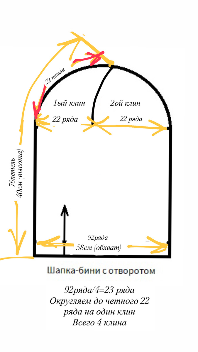 Пряжа Cecilia Svarta faret . (50гр-110м 53% хлопок, 33% вискоза, 14% лен) цвет: 285069 крючок: 8. расход пряжи: 124 гр. плотность вязания: 19 п в 10 см (значит в 1 см 1,9 п) 16 р в 10 см (значит в 1 см 1,6 п) расчеты: 40*1,9=76 петель (высота шапки) 58 см*1,6=92 ряда (окружность шапки) предлагаю учесть коэффициент растяжения для шапки , потому что шапка должна плотно прилегать . Процентов 10-15%. 92ряда-10%=82 ряда (примерно) 82/4=20,5 ряда на убавки делаем по клиньям (количество 20 ряда, делаем четное количество для удобства) 40см*1,9=76 петель (высота шапки) вязание: