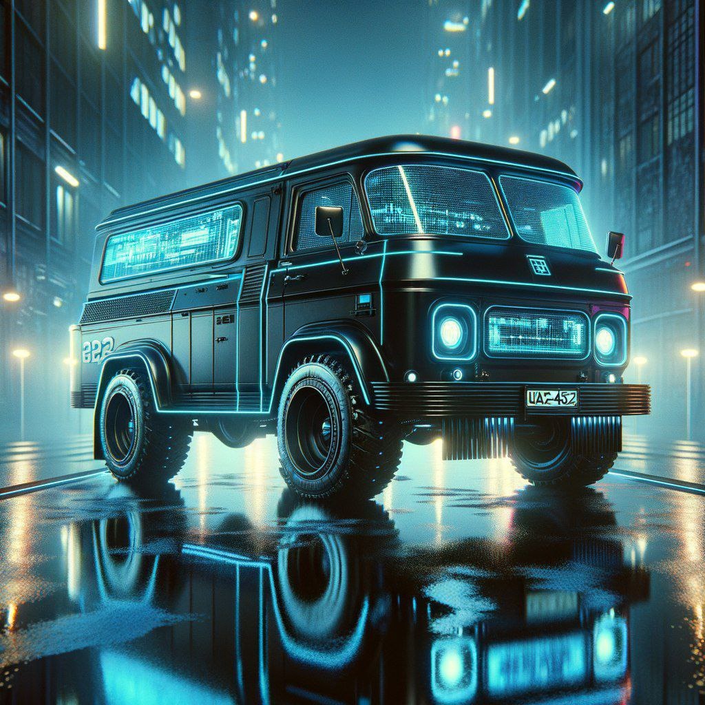 УАЗ «Буханка» из будущего уже здесь! 🚐✨ Для задания «Российский автопром» я представил, как могла бы выглядеть наша легендарная «Буханка» в футуристичном киберпанк-мире! Неоновая подсветка, угловатый дизайн и даже левитация — вот такой технологичный и стильный внедорожник мог бы бороздить просторы городов будущего! 🌃 Наши автомобили всегда славились надежностью, а в этом концепте к ней добавился еще и футуристичный дизайн! 🇷🇺 Нейросеть помогла оживить эту идею. Хотели бы прокатиться на такой «Буханке»? 👇 #ВВЕРХ #НашПутьНашиПобеды #УАЗ #Буханка #Киберпанк #Футуризм #Нейросеть #Автопром