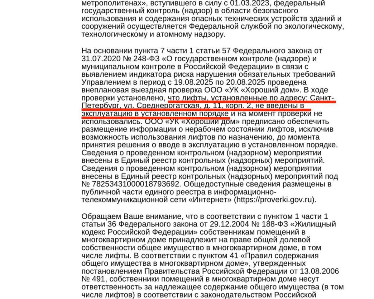 А тем временем Ростехнадзор дал ответ: что лифты не введены в эксплуатацию в установленном порядке (Смотрите скрин присланный жителями)
