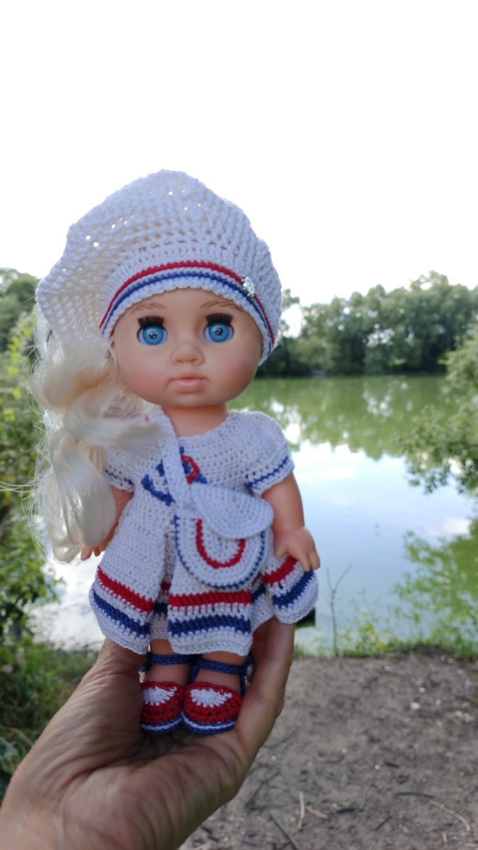 Добрый день всем. Отчет по игре "Летнее бинго с Оксаной Лифенко". Главное условие игры было - выполнение заданий (вязание нарядов) строго по МК Оксаны Лифенко . МК можно было использовать любые, можно было сочетать по всякому. Вот в итоге, что получилось у меня. Часть 1 Первая строка заданий: 1. Наряд в стиле "море" - комплект из платья, берета, туфелек и сумочки связан по МК "Капитанская дочка". 2. Свяжи купальник - купальник и козырек только часть большого МК "Летние каникулы". 3. Вязание с цветочным мотивом - плед с цветочным мотивом тоже из МК "Летние каникулы" 4. Сделай фото куклы на фоне воды - на фото куколка сидит на берегу нашего песчаного карьера (старого), который заполнился водой. Раньше там купались. Продолжение следует... Спасибо, что дочитали статью, если понравилось - ставьте 👍 Всех обнимаю ❤️ #вяжу_куклам_с_Оксаной_Лифенко #ручная_работа #вяжу_куклам