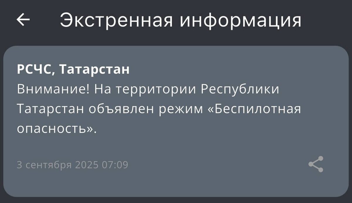 На территории Татарстана объявлен режим «Беспилотная опасность». 🌟 Tatarstan News