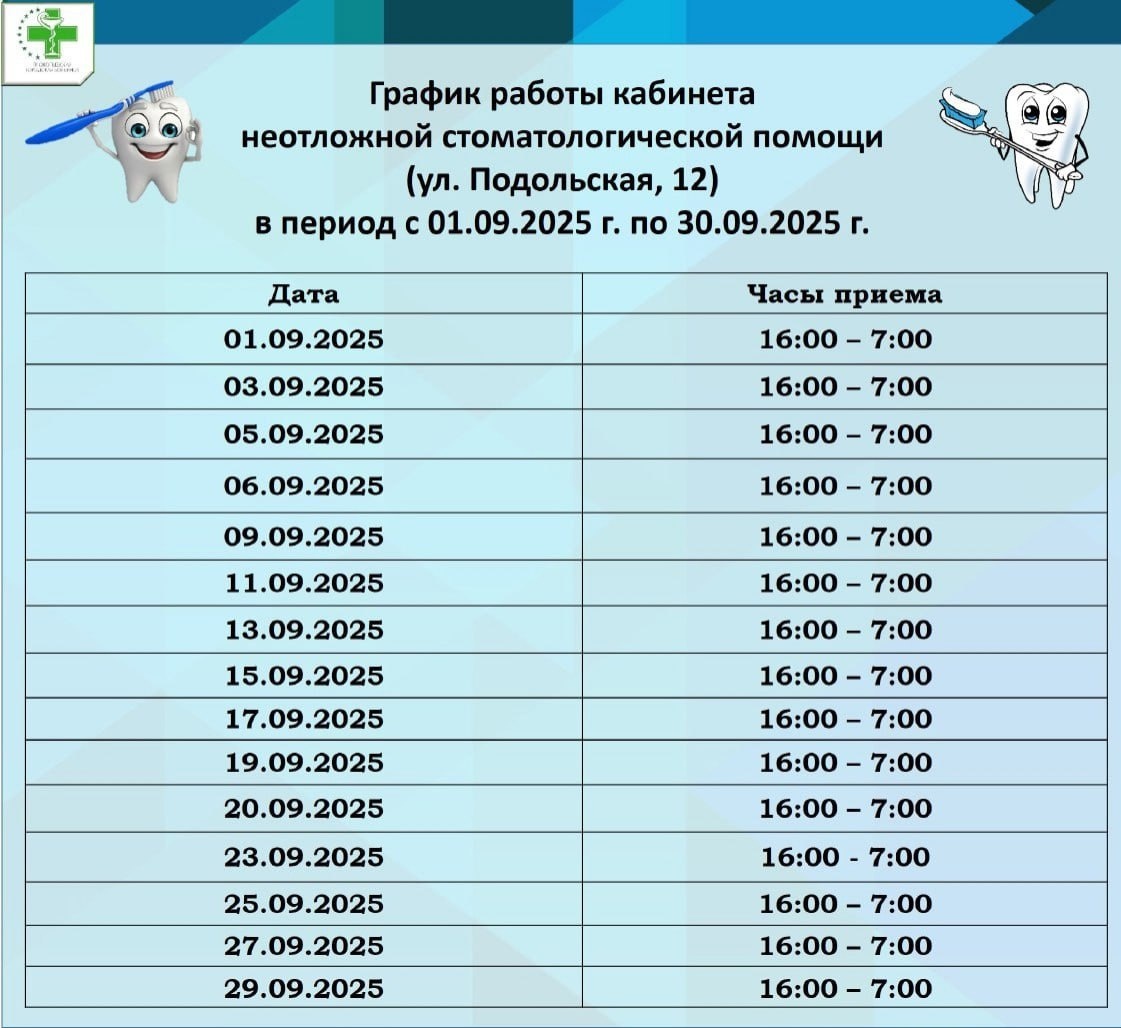 График работы стоматологической службы в Прокопьевске на сентябрь