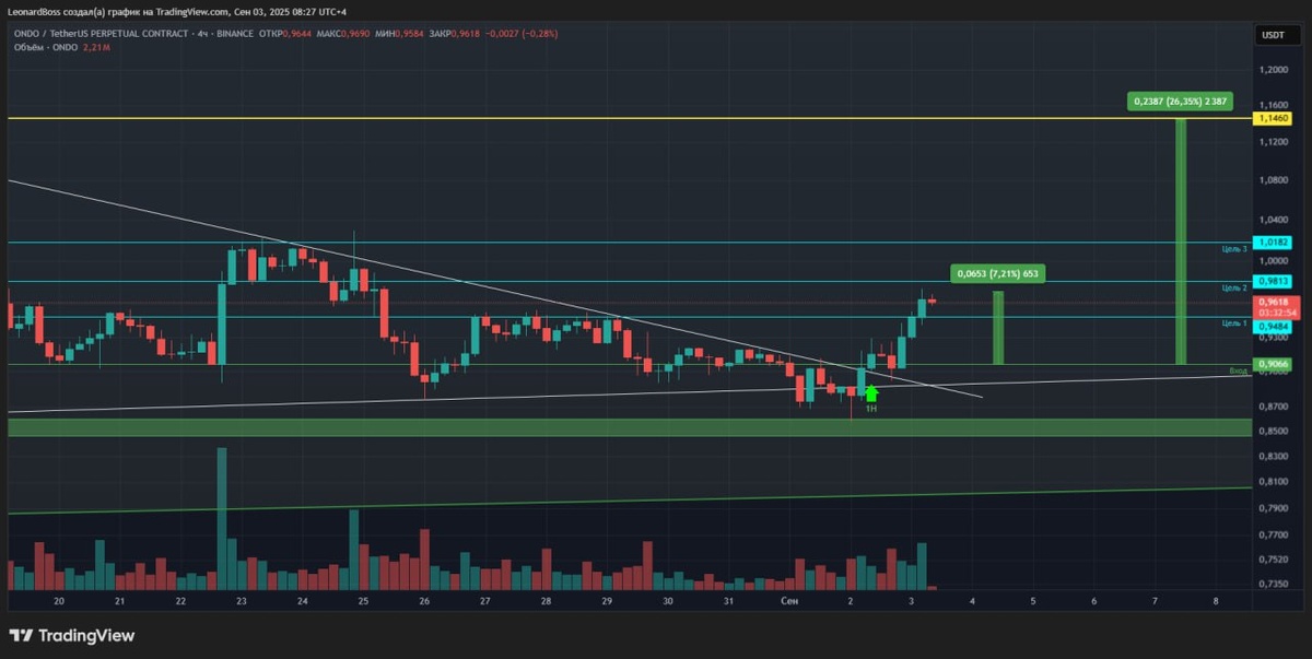 В ответ на пост #ONDO 💵1я цель, done✔️ ⚠️Цена подбирается к 2й цели, кто следовал рекомендации = мой респект и стоп в зеленой зоне, либо фикс, очередные 20% профита за сутки = отличный фундамент для более мощных сделок!! P.s. по проекту скоро выйдут очередные сильные новости, во всяком случае у меня есть такой инсайд. Вот если увидим ближайшие дни мощное движение = это будет подтверждение скорых новостей! Если чисто технически, то после короткой остановки 3я цель уже скоро!!