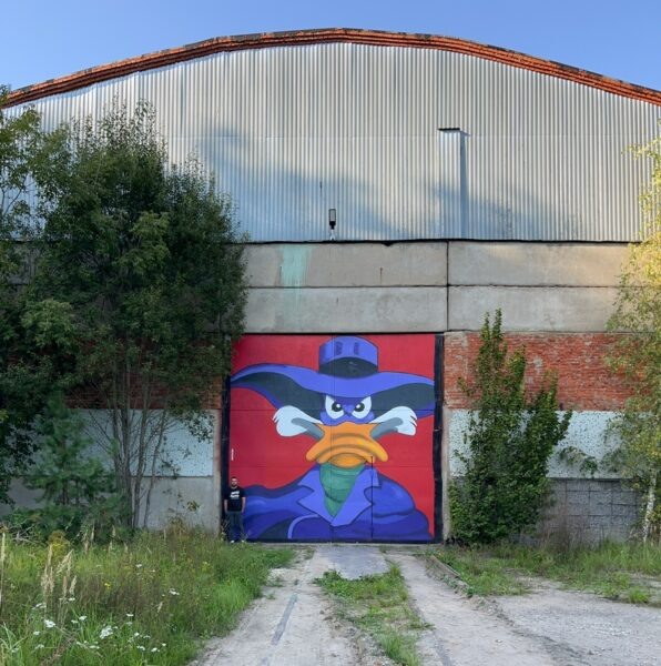 Большой мурал с главным героем популярного в 90-е годы диснеевского мультсериала теперь украшает один из ангаров города. Фотографиями своей работы поделился боровский стрит-арт-художник Postoronny. Автор отметил, что для него это пока рекордная по величине работа. Рисунок занял площадь почти шесть на шесть метров, а для выполнения пришлось задействовать лестницу. Postoronny не первый раз использует необычные локации для творчества и самовыражения. Одно из последних его произведений – вагончик в деревне Митяево в Боровском районе, который он раскрасил в виде легендарной советской игры «Электроника ИМ-02», известной как «Ну, погоди!» или «Волк ловит яйца». Postoronny