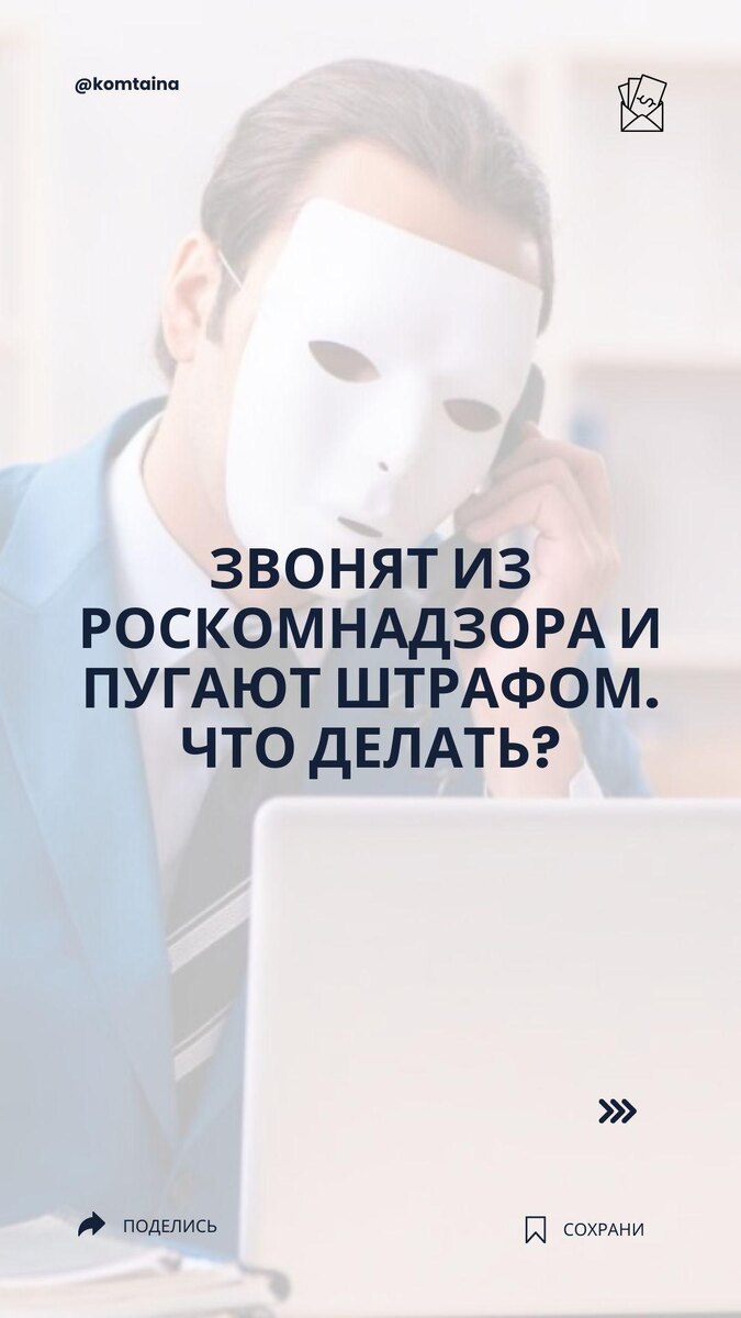 ‼️ Звонят из Роскомнадзора и пугают штрафом. Что делать? Если вам звонят с угрозой штрафа и требуют срочно подать уведомление об обработке персональных данных, это почти наверняка мошенники. Рассказываем, как это устроено и как защитить себя. @komtaina