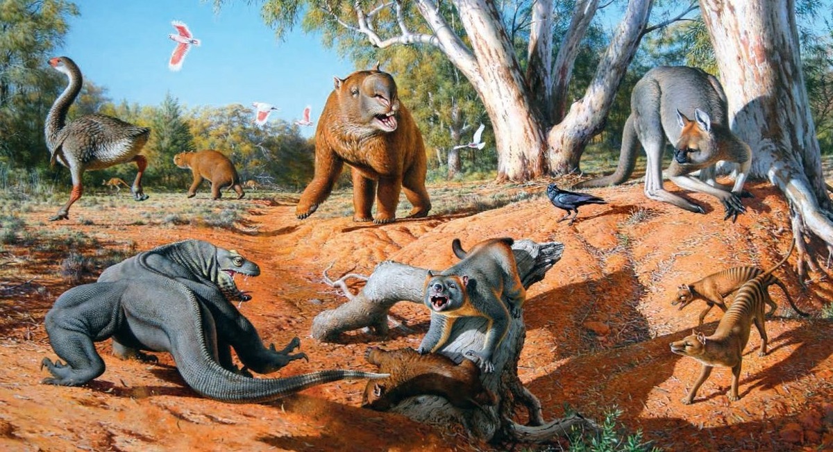 ...Соответственно, возникает законный вопрос, где же обещанное «нетривиальное»? Перечень условно гигантских сумчатых, – тривиально. Указание на их слабость, сравнительно с плацентарными – тем более… Достойное же внимание заключается в не раз упомянутом выше слове «плейстоцен». Все эти твари жили не ранее 2.5 миллионов лет назад, являлись современниками, и, в принципе, одновременно же – между 40 и 3 тысячами лет назад, – вымерли. Тогда же, кстати, Австралию населяли и гигантские рептилии, и огромные птицы. Выдающиеся диапсиды до появления человека дожили не все, поскольку за место на вершине пищевой пирамиды между ними шло нешуточное рубилово…