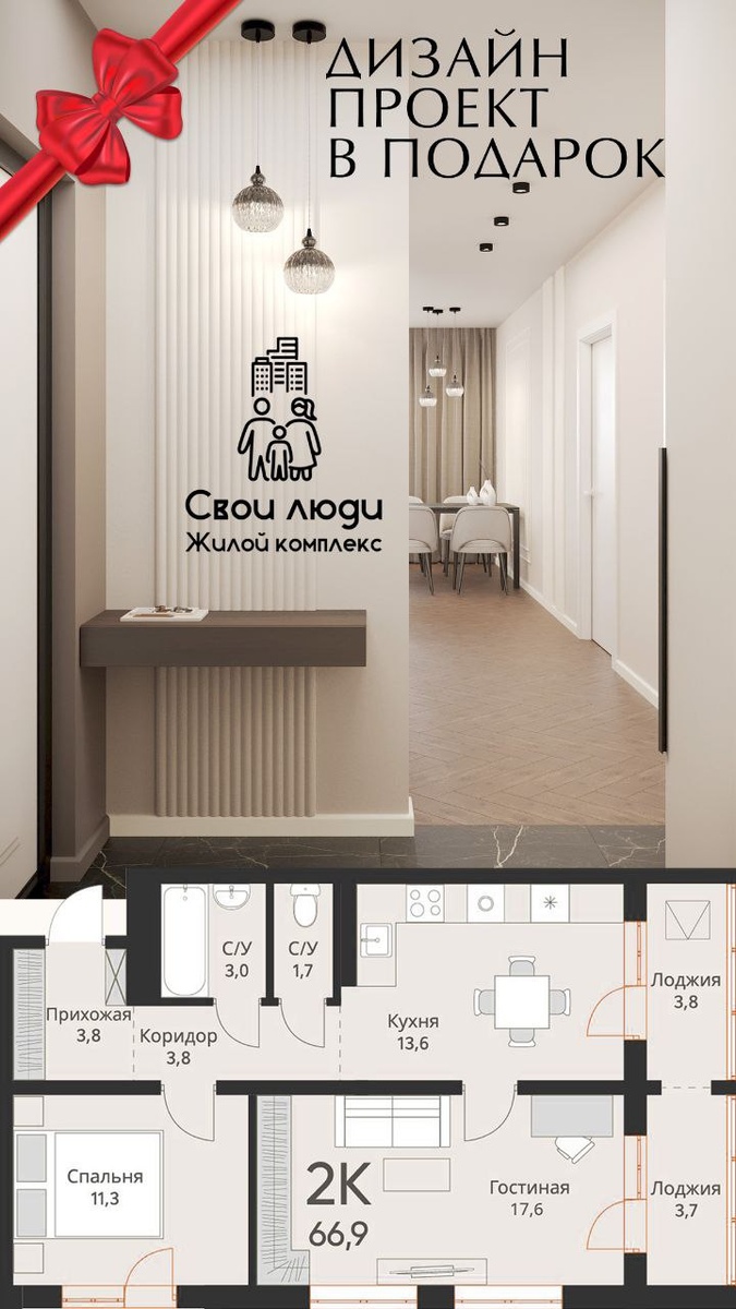 Последняя квартира в Своих Людях, дом 1. К ней прилагается полный дизайн проект (экономия до 200 тысяч рублей!) на выбор: комфорт, минимализм и современная классика!