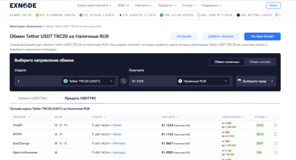 Первый шаг — это выбор надёжного обменного пункта. Чтобы не тратить время на поиск, можно воспользоваться мониторингом Exnode. Здесь собраны актуальные обменники, их курсы и реальные отзывы клиентов. Сравнив условия, вы сможете понять, какой сервис подойдёт именно вам, если вы ищете, как вывести USDT с кошелька максимально выгодно.