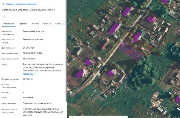Название: Земельный участок из земель населенных пунктов площадью 607 кв.м, кадастровый номер 76:05:021701:9437, местоположение: Российская