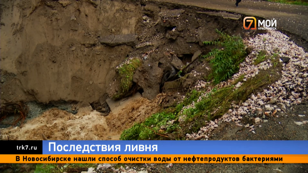 Разрушенные дороги, затопленные подвалы, мокрые стены и потолки в квартирах. Это то, что оставил красноярцам после себя вчерашний ливень. Он установил новый рекорд: за день на город пролилось больше месячной нормы осадков. – Речка была под землёй, и там сейчас всё разрушено, склон этот ползёт, скалы нет, непонятно, сколько это будут ремонтировать.