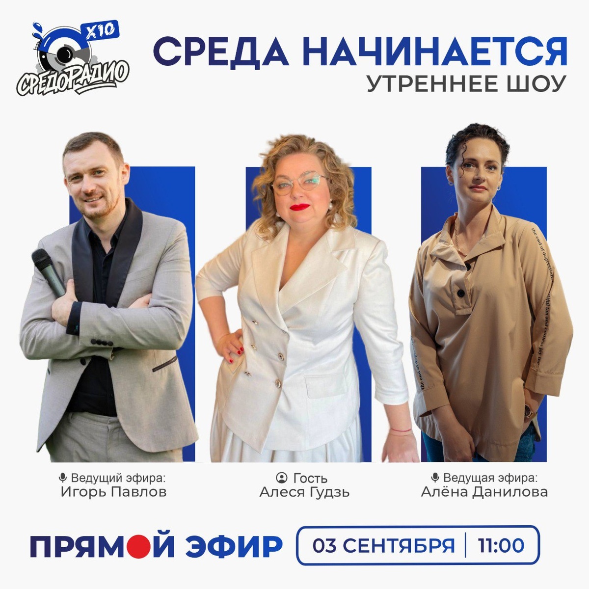 🌅 Доброе утро, друзья! Сегодня 03 сентября в 11:00 по мск в эфире Утреннего шоу «Среда начинается» с Игорем Павловым и Алёной Даниловой — наша гостья Алеся Гудзь (Запределье). Эфир: https://myradio24.com/5559 Приложение MyRadio24: https://dzen.ru/media/sredoradio/-68945075272f5b1d26ed07e3 ТГ: https://dzen.ru/id/68347b0544414e3a879796a0 группа ВК vk.com/sredoradio Её история — это про силу семьи, путь из Барнаула во флористику и бизнес, про взлёты, испытания и главное — умение вовремя сказать себе: «Я живу не ради бизнеса, а бизнес — ради меня». ◾️Основатель Х10 Движения на Алтае ◾️Первый Региональный Лидер Х10 в Бийске ◾️Наставник Школы Клампера, Наставник Школы Региональных Лидеров ◾️Мастер Х10 Академии, Уровень Мастера 7 ◾️Член Совета Х10 Движения ◾️Ректор Института Бизнеса Академии Силы Сообществ ◾️Региональный Представитель «PRO Женщин» в Бийске 2021-22гг., ◾️Соавтор книги Екатерины Рыбаковой «Слово женского рода» ◾️Сооснователь оптово-розничной сети, 15 лет в Бизнесе ◾️Основа