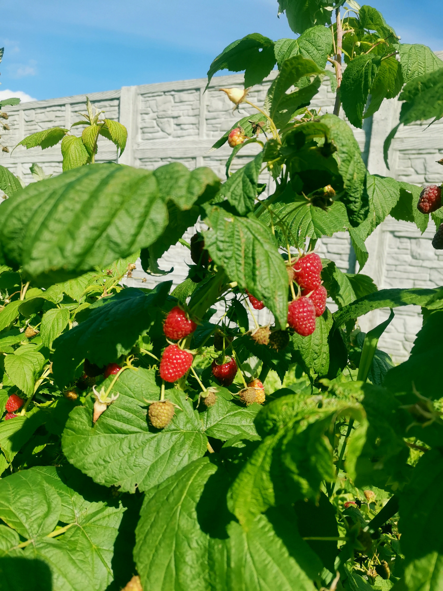 А у нас царит атмосфера настоящего ягодного праздника: зреет малинка. Урожай настолько щедрый, что ягоды сами прыгают в рот!