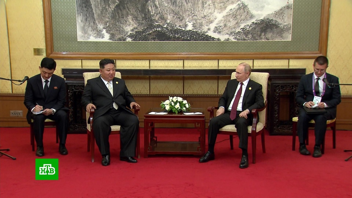 [ Смотреть видео на сайте НТВ ] Президент РФ Владимир Путин и председатель государственных дел КНДР Ким Чен Ын встретились в резиденции «Дяоюйтай» в Пекине. Владимир Путин подчеркнул, что рад возможности провести отдельную встречу с Ким Чен Ыном в Пекине. Российский лидер выразил благодарность за участие воинов КНДР в освобождении Курской области. Как отметил Путин, спецподразделения КНДР участвовали в этом по инициативе Ким Чен Ына и в полном соответствии с договором двух стран. «Хочу вас от имени российского народа поблагодарить за это участие в современной борьбе с неонацизмом», — подчеркнул президент РФ, также попросив «передать самые теплые слова благодарности всему народу Корейской Народно-Демократической Республики». Как отметил Путин, военные из КНДР «сражались мужественно и героически». В России, подчеркнул президент, никогда не забудут тех жертв, которые понесли корейские Вооруженные силы и семьи военнослужащих. Ким Чен Ын подчеркнул, что Пхеньян готов оказать Москве любую по