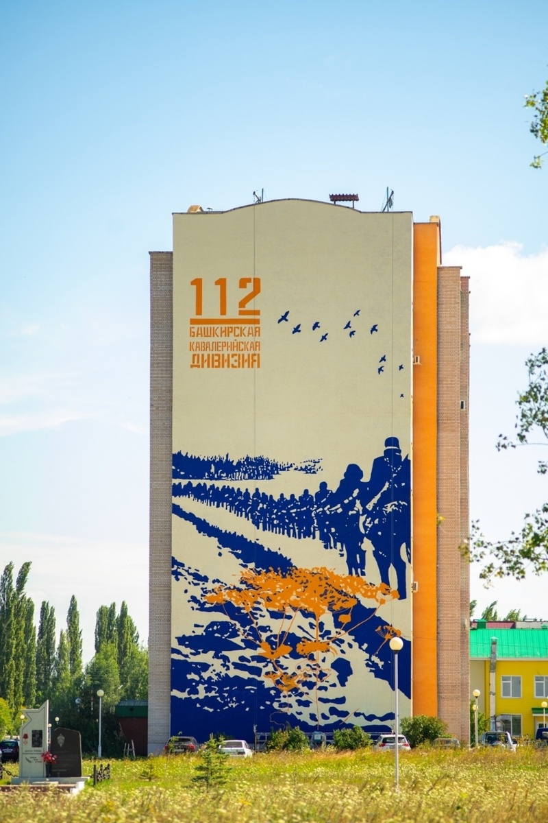 Фестиваль уличного искусства ПФО «ФормАрт» объединяет молодых художников, которые создают современное и комфортное городское пространство. В этом году основное внимание было уделено теме защиты Родины, памяти о Великой Отечественной войне и подвигах героев нашего времени. В городе Агидель, на фасаде десятиэтажного здания, появилась работа художника из Башкортостана Кирилла Ильина под названием «Всадники». Этот монументальный мурал посвящён воинам легендарной 112-й Башкирской кавалерийской дивизии. В центре композиции изображены кавалеристы, возглавляемые генерал-майором Минигали Шаймуратовым. Работа имеет особое значение для города, так как после войны здесь жил Герой Советского Союза Абдулла Файзрахманович Шагиев, один из бойцов этой дивизии. Как проголосовать: Голосование продлится до 15 сентября – принять участие может каждый. Фото Источник: https://mgazeta.com/news/novosti/2025-08-29/startovalo-narodnoe-golosovanie-za-luchshiy-mural-formart-2025-4366400?utm_source=e.mail.ru&utm_med