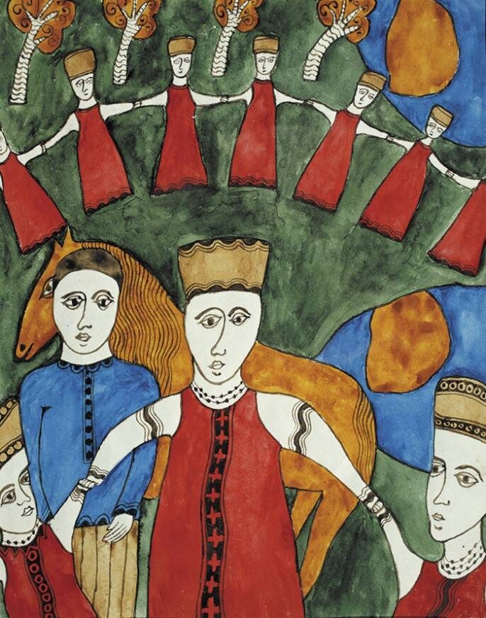 Начинается русское возрождение, сквозь асфальт, ломая его корку, пробиваются русские цветы. Один из признаков этого цветения — возникающие по всем городам хоры, танцевальные ансамбли, фольклорные кружки, возвращающие к жизни великое народное искусство. Не то, что прошло стерилизацию концертных программ и в кокошниках под гармошки и балалайки полнится безвкусными однодневками. А могучее, донное, изначальное, как огненная магма, кипит в глубинах народной жизни. Исчезли старинные деревенские хоры, ушли голубоглазые старухи-певуньи, но их великое наследие, сбережённое фольклористами, возвращается в жизнь. Молодые голоса в их подлинном народном звучании исполняют величальные, свадебные, походные, разбойные песни. И эти песни, как молодильные яблоки или живая вода, делают тебя молодым, любящим, верящим, бесстрашным — бессмертным.