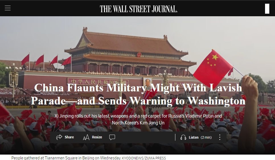 Рубрика «О чем говорят на Западе»: 🔹Си Цзиньпин демонстрирует новейшее оружие и расстилает красную дорожку для Владимира Путина и Ким Чен Ына — The Wall Street Journal. 🔹Трамп разразился яростью в социальных сетях после появления в эфире кадров, на которых Си Цзиньпин принимает лидеров России и КНДР на сегодняшнем параде. Президент США обвинил их в сговоре против Соединенных Штатов — CNN. 🔹Си Цзиньпин в среду председательствовал на масштабном военном параде с участием истребителей, ракет и марширующих войск, а также выступил с дерзким предупреждением противникам не оспаривать суверенитет его страны — The New York Times. 🔹Китайский лидер сосредоточился на укреплении альянсов с Путиным, Ким Чен Ыном и другими главами государств, разделяющими его взгляды — The Washington Post. Завидовать плохо! 👍 БайБайден. Подписаться