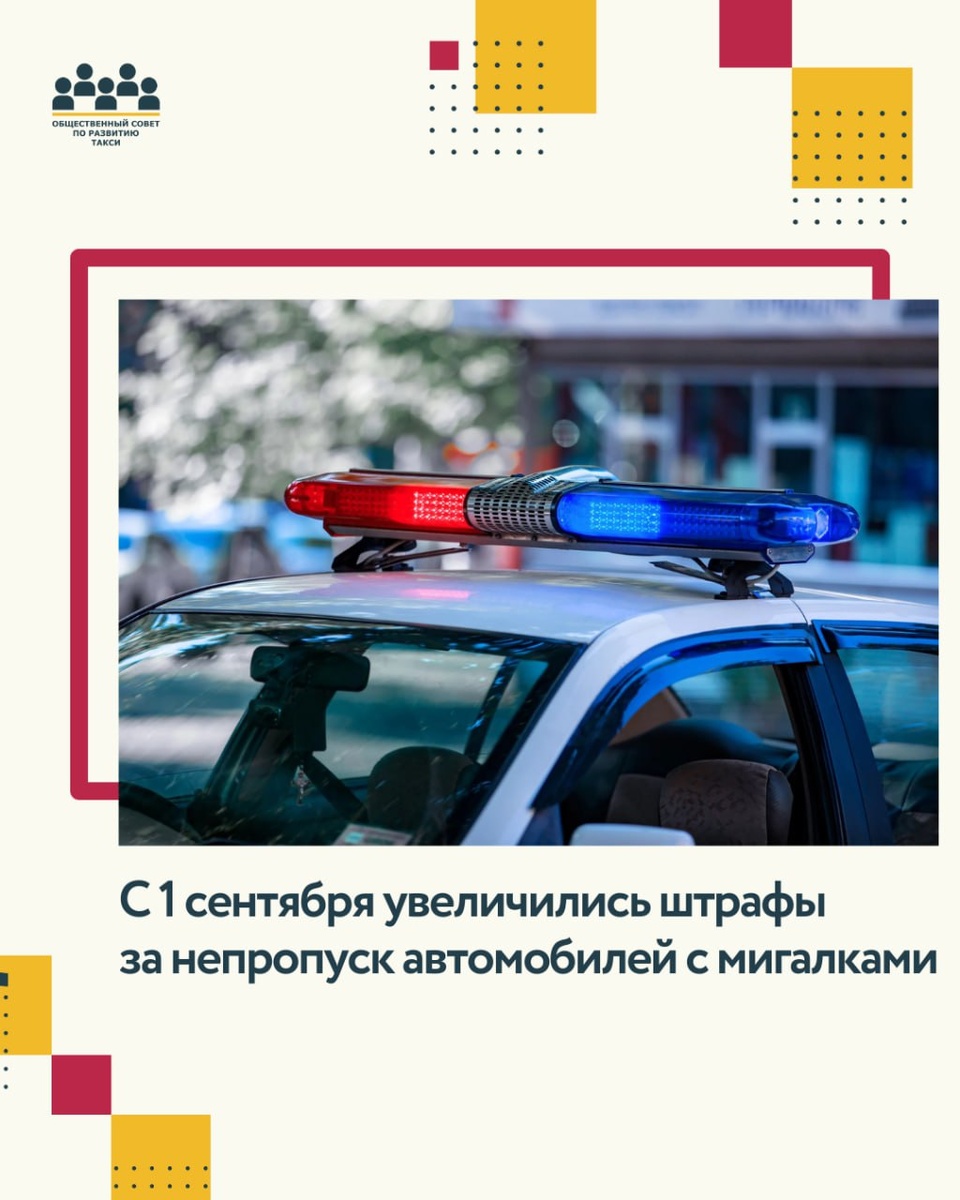 ❗❗❗ Важная новость для водителей! 🚨 С 1 сентября новый штраф за непропуск спецтранспорта! 🚗 С 1 сентября вступают в силу значительно увеличенные штрафы за отказ уступить дорогу автомобилям со спецсигналами 🚨🚨(скорая помощь, пожарные, полиция и т.д.). Что изменилось? ❗️Штраф: Теперь от 7 500 до 10 000 рублей! (Раньше: от 500 до 7 500 рублей). 🚫Лишение прав: От 6 месяцев до 1 года! Важно знать: 💡Штрафы применяются независимо от наличия спецраскраски на автомобиле спецслужб. Обязательное условие: должны быть включены проблесковые маячки и звуковой сигнал. Чтобы избежать штрафа, необходимо перестроиться на другую полосу или съехать на обочину, не создавая помех для проезда спецтранспорта. Будьте внимательны на дорогах и соблюдайте правила! Источник