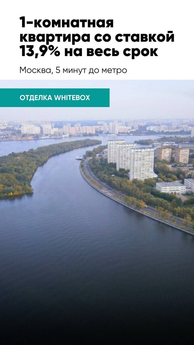 Ключ 13,9% на весь срок для всех⚡(и это не шутка) При ключевой ставке 18% и рыночных предложениях от 18,49% до 24,99%. Например, вот такой вариант можно купить: 1-комнатную квартира с отделкой WhiteBox — всего в 2 минутах пешком от трёх благоустроенных набережных. 😛Локация: Нагатино-Садовники • м. Нагатинская — 5 минут пешком • м. Верхние Котлы — 15 минут пешком Особенности ЖК: • 3 набережные рядом: Нагатинская, Новоданиловская и Марка Шагала. • Напротив спроектирован новый мультифункциональный ТРЦ с бассейном и кинотеатрами. • В пешей доступности магазины, кафе, школы, детсады, медцентры, батутный и скейт-парк, горнолыжный комплекс и картинг. • Wi-Fi по всей территории. • Закрытый двор с охраной 24/7, ландшафтным дизайном, зонами отдыха, детскими и спортивными площадками. • Детский сад и школа внутри комплекса. • Квартиры с предчистовой отделкой, потолками 3,15 м и панорамными окнами. Из некоторых открывается вид на реку. 💵Стоимость: 23 835 340₽ 30 171 316₽ (при покупке