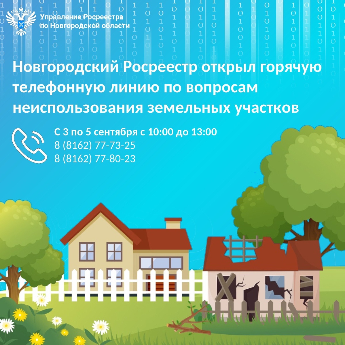 ⚡ С 1 сентября 2025 года вступило в силу постановление Правительства РФ № 826, которым утверждён единый перечень признаков неиспользования земельных участков. Новые правила касаются земель населённых пунктов, а также садовых и огородных участков и призваны унифицировать подходы к оценке их использования по целевому назначению. Для разъяснения новых правил и помощи гражданам Управление Росреестра по Новгородской области организовало специальную горячую линию. ✅ Специалисты ведомства ответят на вопросы о том, какие именно признаки указывают на неосвоение земли, как избежать признания участка неиспользуемым и что делать, если возникли спорные ситуации. Горячая линия работает в будние дни с 3 по 5 сентября с 10:00 до 13:00 по телефонам: 📞8 (8162) 77-73-25 📞8 (8162) 77-80-23