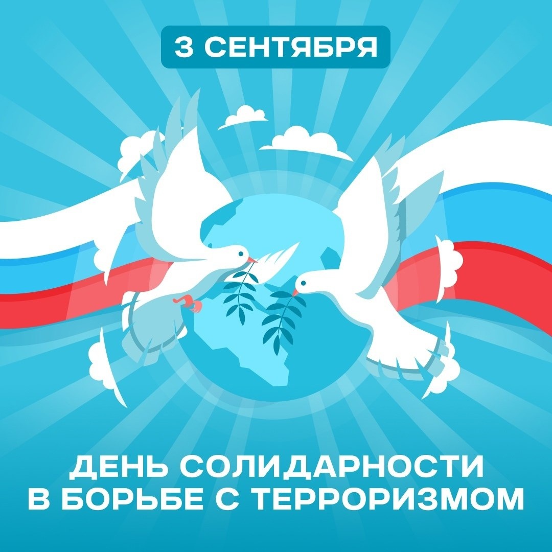 Ежегодно 3 сентября в России отмечается День солидарности в борьбе с терроризмом. Эта дата связана с трагическими событиями, произошедшими в первые сентябрьские дни 2004 года в Беслане. В течение 57 часов террористы удерживали в здании школы города Беслан более 1100 заложников в тяжелейших условиях (преимущественно – детей, в том числе и дошкольников). Трагические события сентября 2004 года унесли жизни 333 человек, а 783 были ранены. В этот день мы отдаём дань памяти жертвам террористических актов, а также вспоминаем сотрудников правоохранительных органов и военнослужащих, отдавших свои жизни в непримиримой и жестокой борьбе с терроризмом. Мы #ВместеПротивТеррора!
