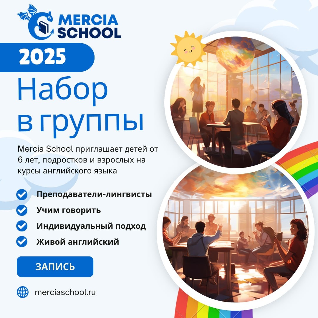 🌟 Центр иностранных языков Mercia School приглашает детей от 6 лет и взрослых погрузиться в удивительный мир английского языка