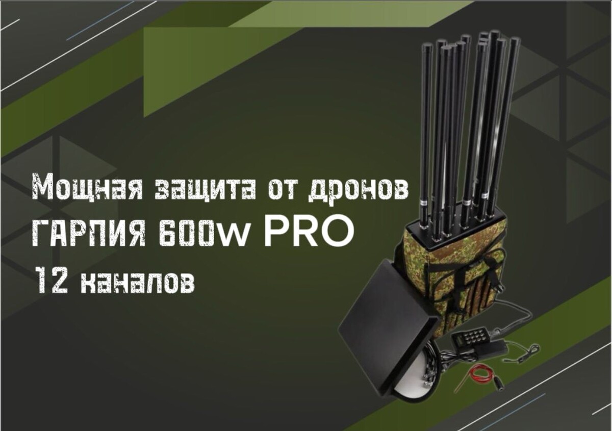 ГАРПИЯ Perimeter 600W PRO — это мощный 12-канальный подавитель дронов, который создаёт всенаправленный купол радиусом до 1500 метров.