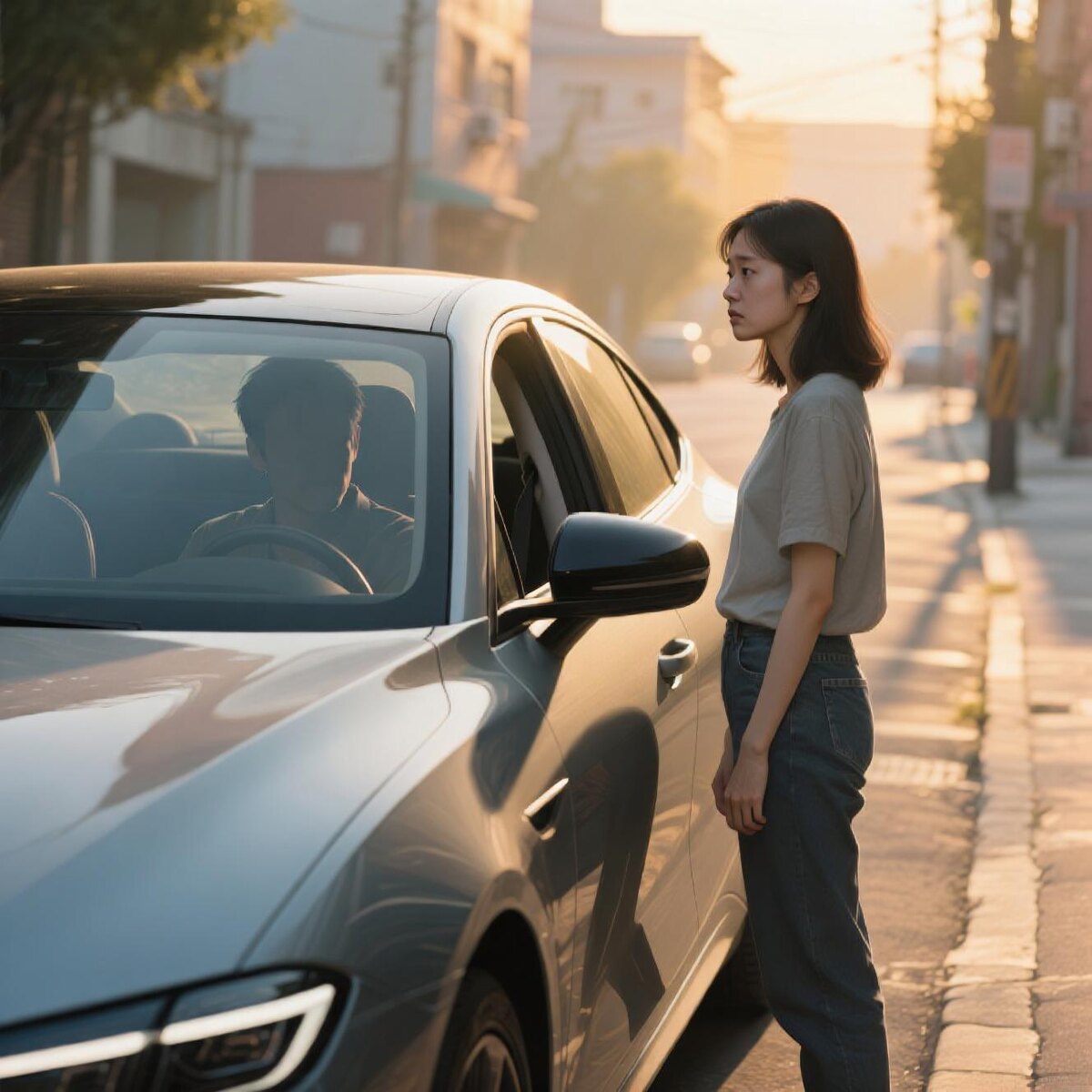 Внезапно ритм ожидания был грубо нарушен. К тротуару, будто в изнеможении, причалил тёмный автомобиль. Он резко сбросил скорость, замер, замигал аварийной — тревожный маяк в обыденности улицы. Минуту, другую… Дверь не открывалась. Сначала она лишь скользнула по блеску кузова рассеянным взглядом, но неподвижность внутри постепенно начала тревожить. Прошло пятнадцать долгих минут, и простое любопытство кристаллизовалось в холодную тревогу.
