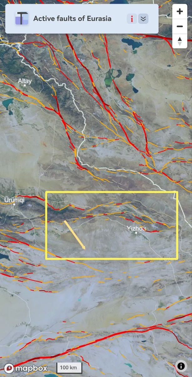 Вновь рисует ОСТИ уровня М5-6 зона на границе Китая с Монголией к юго-востоку от Урумчи