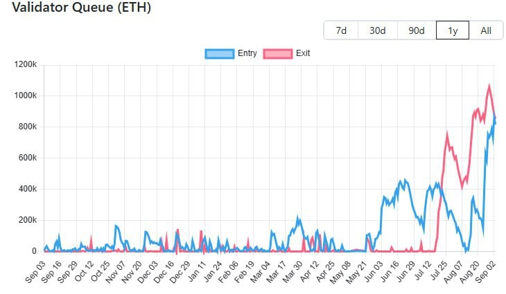 💁♂️ В коментах задали вопрос: «А какого хрена такая очередь на вход?» Ладно, похайпили и хватит. Давайте посмотрим на очередь на выход — тоже гигантская. После обновления Pectra в Ethereum идёт ротация ETH. 😕 У нас нет оснований говорить, что эти очереди реально повлияют на цену. Движение в стейкинге не сопровождается ростом биржевых балансов ETH, мы не видим притока-оттока на площадках. Поэтому сами по себе эти данные пока ни о чём не говорят. 🍆 Но за ними стоит следить, потому что в целом, как заметил один из подписчиков (передавая мысль из ИИ Маска Grok), они могут влиять на ликвидный float — но только тогда, когда расхождение станет очевидным. Так что спокойствие, только спокойствие — это больше похоже на хайп, чем на реальный сигнал.