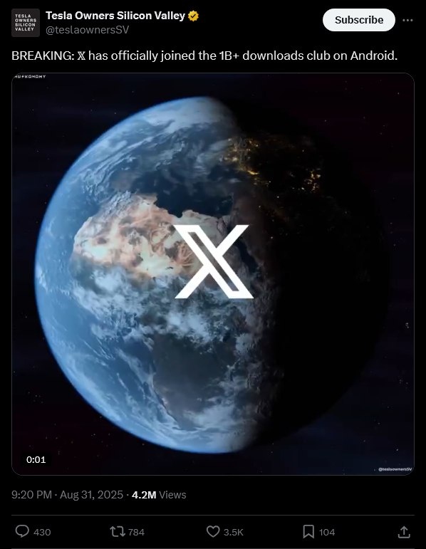 Более миллиарда пользователей установило мобильное приложение X.com на Android