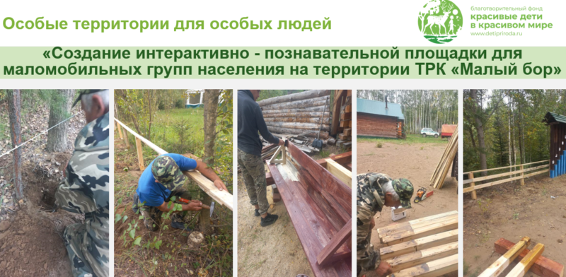 Проект по созданию интерактивной площадки для маломобильных групп населения в Малом бору активно набирает обороты Реализация проекта по созданию интерактивной площадки для маломобильных групп населения в туристско-рекреационном комплексе «Малый бор» активно набирает обороты. Данный проект имеет важное социальное и просветительское значение, так как направлен на развитие доступной среды и вовлечение людей с ограниченными возможностями здоровья в эколого -познавательные и природоохранные мероприятия. На текущем этапе проведены конкурсные процедуры: организованы и завершены аукционы на определение поставщика специализированного санитарного оборудования — туалетного модуля для маломобильных групп населения, а также на устройство самой площадки и установку интерактивных объектов и стендов. Эти мероприятия позволили определить подрядчиков, которые возьмут на себя выполнение ключевых технических задач. Параллельно сотрудники Елабужского участкового лесничества ведут подготовительные и строи