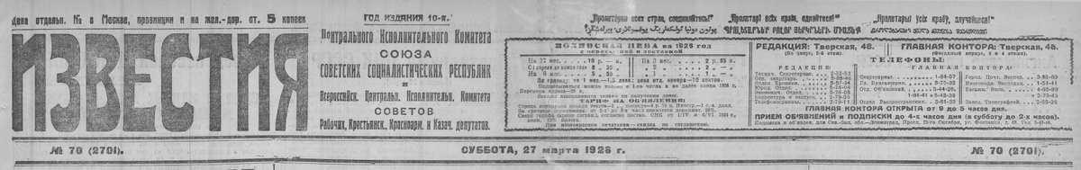 27 марта, газета "Известия" Было бы более согласно с существом дела, если бы антреприза "Негро-оперетты" уставила бы манеж II госцирка на эти спектакли не рядами стульев, а парой-другой десятков... ресторанных столиков. Впрочем, реклама сама в этом косвенно признается, отказавшись теперь от претензий на оперетту и квалифицируя предлагаемое зрелище, как негритянское ревю и негритянский концерт. Однако, между концертом и ревю существенной разницы нет: убрали ни к чему не нужные наивные "декорации" (у нас такие пишут в деревенских нардомах), джаз банд из помещения для оркестра перебрался на сцену, - только и всего. Ревю - чередование ничем, в сущности, не связанных, отдельных номеров негритянского дивертисмента. Негритянский спектакль этот представляет собою соединение цирка и эстрады; при этом то, что здесь от цирка, великолепно и первоклассно, эстрадный же элемент определенно никзопробен и убог. Негры - изумительные акробаты, замечательные чечёточники - настоящие "виртуозы ритма", в сво