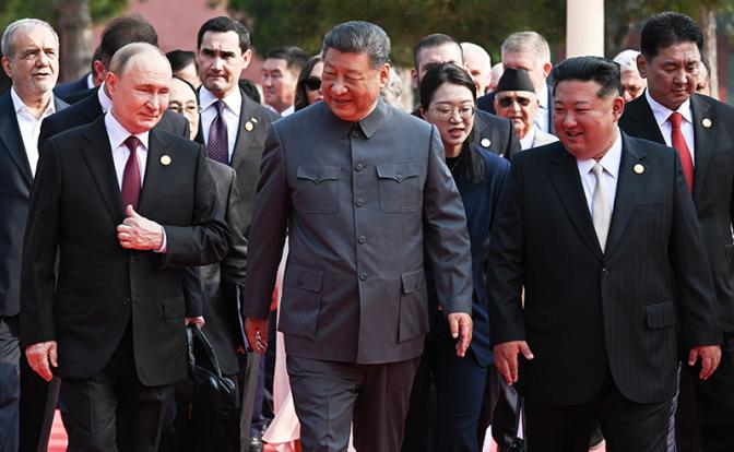 По мнению Bloomberg, появление Кима рядом с Путиным и Си должно подчеркнуть растущие связи между тремя лидерами и продемонстрировать готовность к более открытому сотрудничеству в противостоянии западному давлению. Для всех трех стран (а теперь и Индии) общий трек — это борьба с американскими санкциями