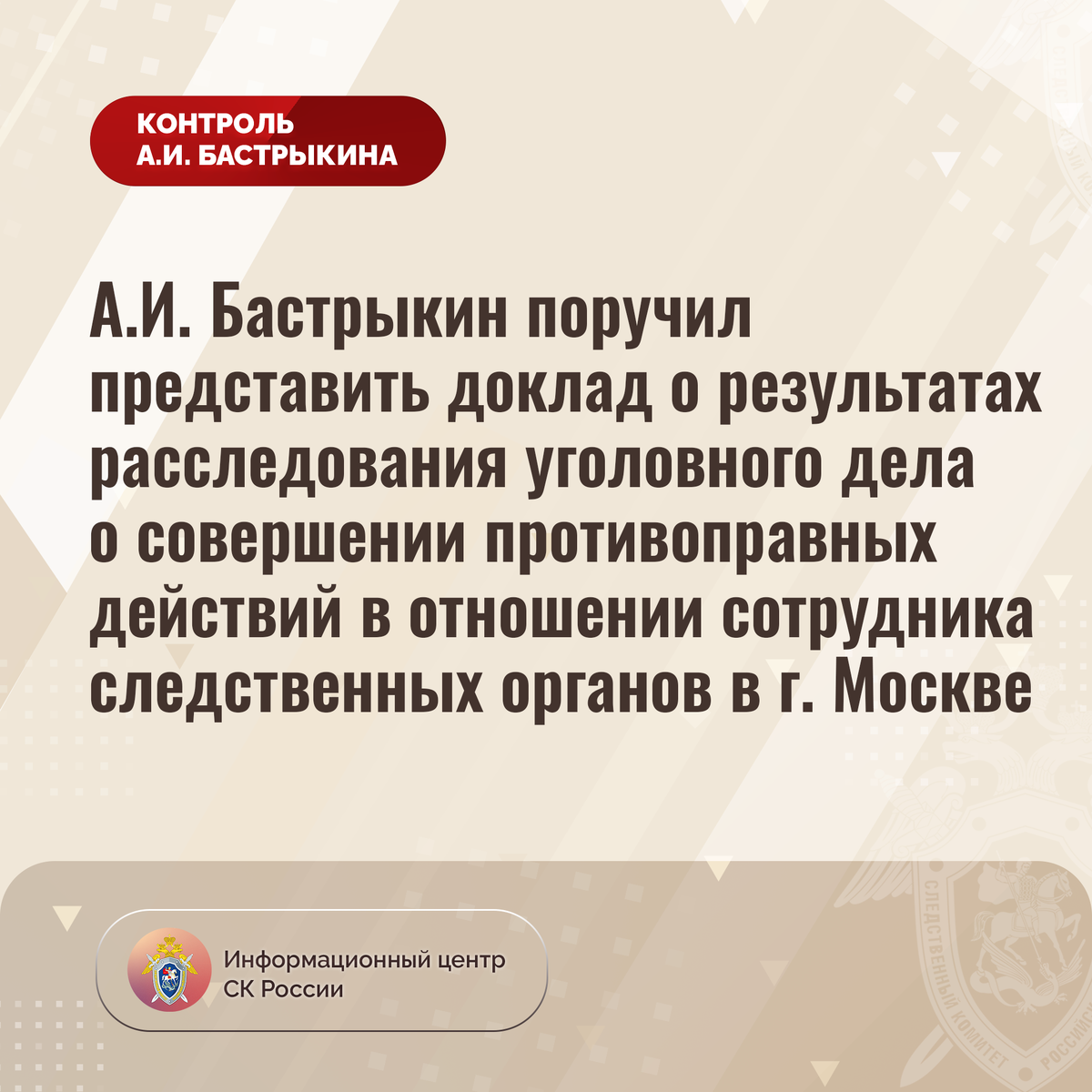 А.И. Бастрыкин поручил представить доклад о результатах расследования уголовного дела о совершении противоправных действий в отношении сотрудника следственных органов в г. Москве