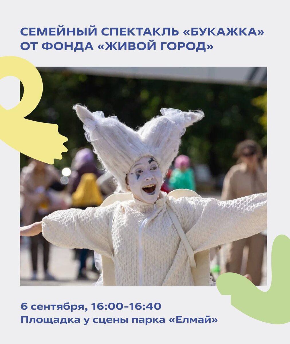 В парке Елмай покажут детский спектакль 6 сентября в детском парке Елмай пройдет спектакль «БукаЖка». Это история о поиске мечты и о том, как важно успеть сделать все задуманное. Под влиянием обстоятельств герои забывают про свои заветные желания, но однажды находят их и решают отправиться вслед за ними. 6 сентября 16:00-16:40 ✔️ вход свободный 📍Площадка у сцены парка Елмай, Казань 😹 Куда пойти с детьми в Казани @kidsafisha Больше информации в нашей группе, переходите