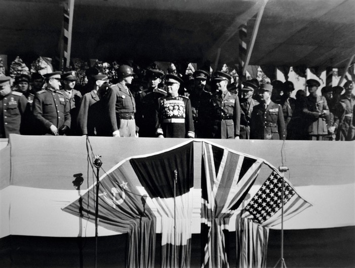 80 лет назад - 7 сентября 1945 года - в Берлине состоялся парад союзников, всех основных участников антигитлеровской коалиции - в честь завершения Второй мировой войны. Инициатива исходила от советской стороны. К тому времени парады уже прошли в Советском Союзе - 24 июня в Москве, Британия провела свой парад в Берлине 21 июля. Советская сторона направила приглашения командующим союзными войсками Дуайту Эйзенхауэру, Бернарду Монтгомери и французскому генералу Делатру де Тассиньи. Но американцы и англичане решили демонстративно принизить роль Советского Союза в победе над Германией и Японией. Эйзенхауэр, отдыхавший на юге Франции, не стал прерывать свой отпуск, поручив принять участие в параде генералу Джорджу Паттону. Монтгомери сослался на большую занятость и послал своего заместителя генерала Брайана Робертсона. От французов согласие дал командующий французской оккупационной зоной генерал Пьер Кёниг. Советское руководство расценило отказ первых лиц принять участие в параде как проявле