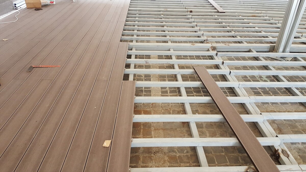 - Материал лагов — алюминий, ДПК, дерево.