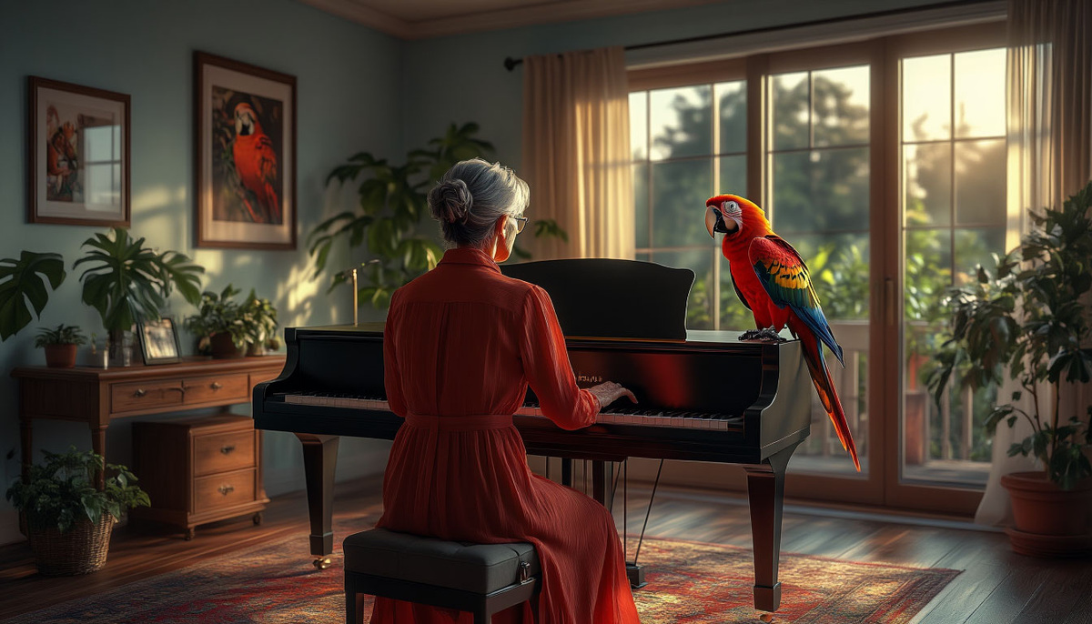 неё всё... Сидит на плече, когда она играет на пианино. Говорит: «Анка,