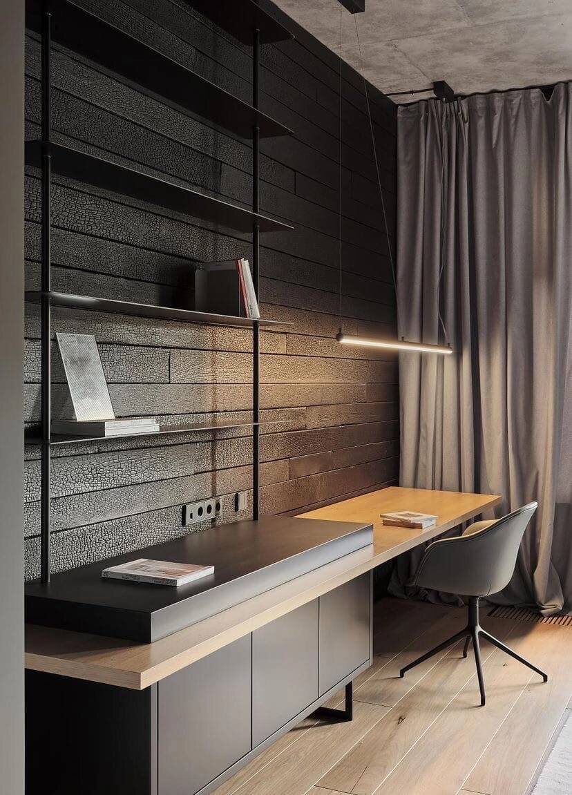 Отделка стен в частном проекте Автор: @da_bureau @velikotskiy_nikolay Материал: Suntan BURN