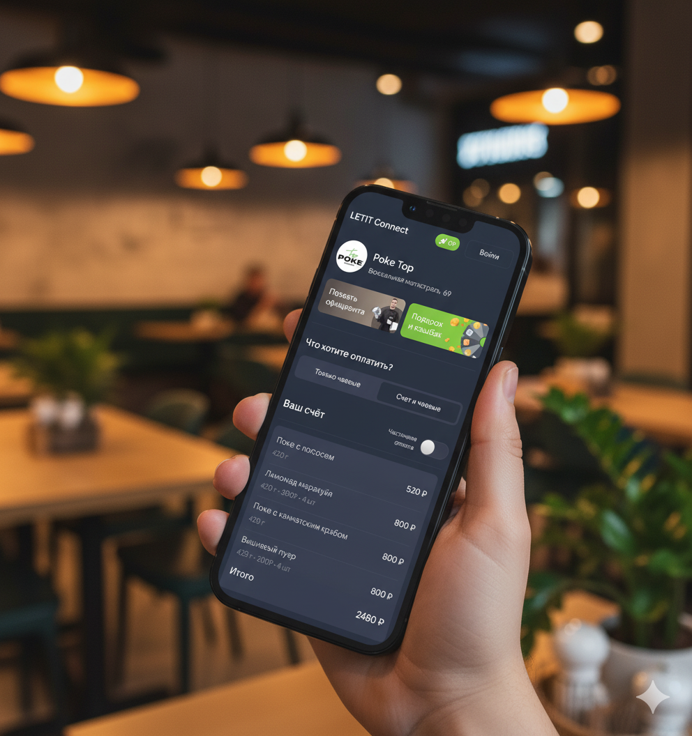 Но что самое крутое — LETIT CONNECT — это полностью бесплатный сервис. Вам не нужно платить за подключение или использовать дорогие рекламные компании для привлечения новых клиентов. Всё, что нужно — это интегрировать систему оплаты через QR-код в ваш ресторан, и все маркетинговые инструменты, включая геймификацию, сбор базы данных и авторассылки, будут работать за вас.