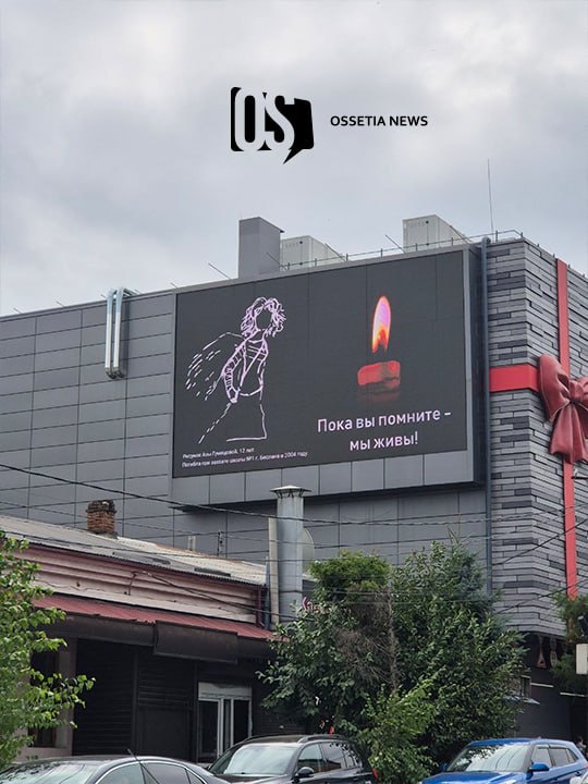 На них появился рисунок 12-летней Азы Гумецовой, погибшей в теракте в Беслане в 2004 году. Это изображение однокрылого ангела, ставшего символом бесланской трагедии. Рисунок подписан словами: «Пока вы помните — мы живы». Реклама на экранах в течение дня будет отключена. Акцию проводит мэрия Владикавказа.