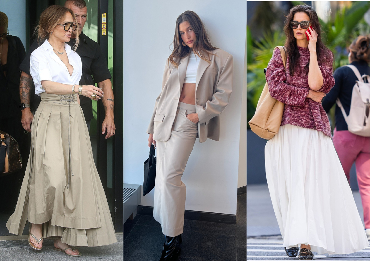 Кэти Холмс и Хейли Бибер также активно включают макси-юбки в повседневный стиль.